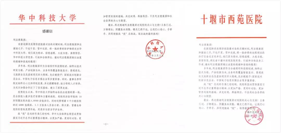 不忘初心,共克時艱。一直以來,利亞德科技抗疫的行動從未停止,對疫區的物資捐贈也從未間斷。日前,利亞德追加捐贈武漢的2000件一次性醫用防護服、20臺公共手部消毒智能裝置、1噸(可消殺面積至少高達600萬平方米)消毒粉,也已分別發往華中科技大學同濟醫院及校醫院進行分發。